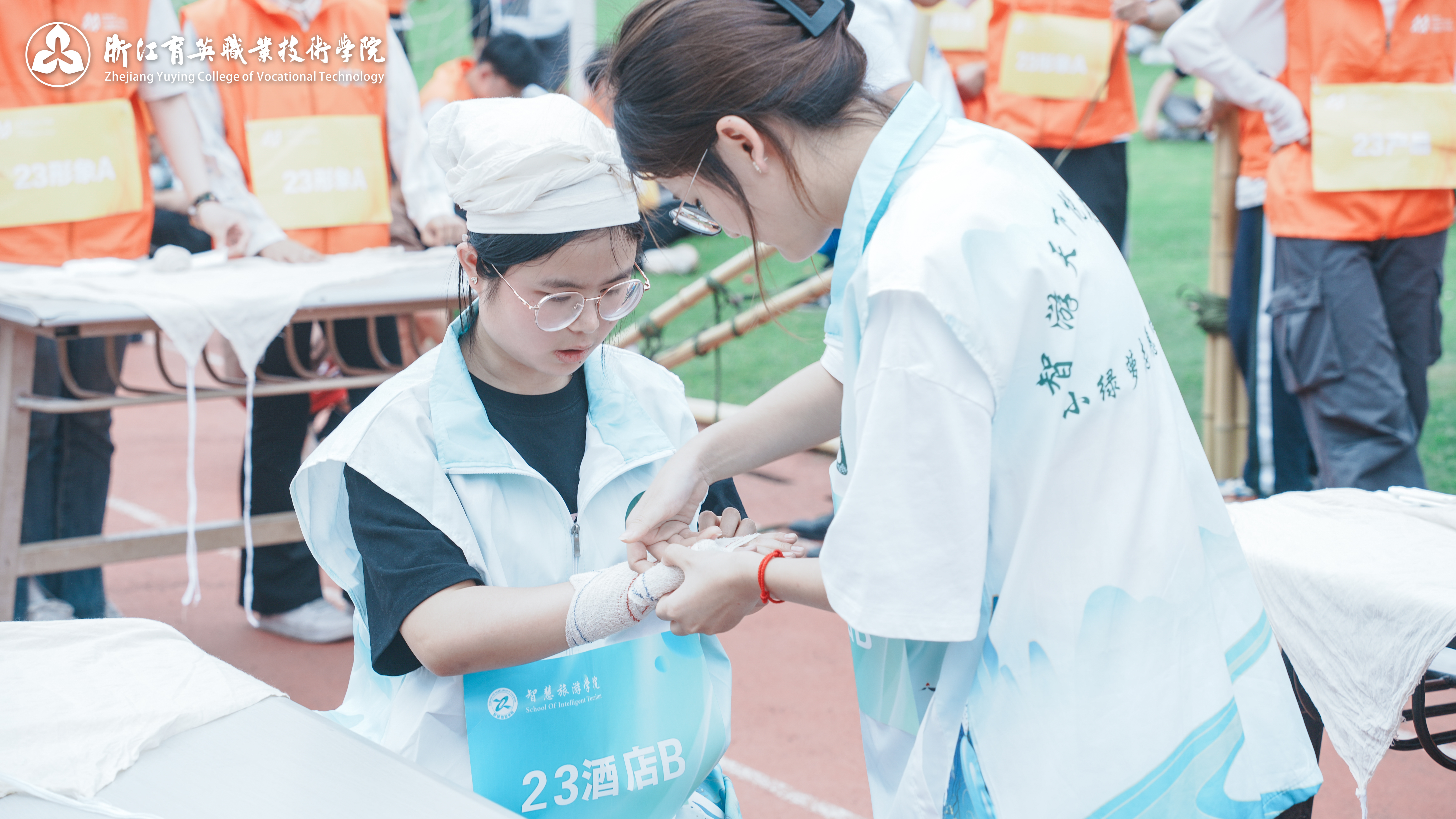浙江育英职业技术学院已连续举办20届卫生健康知识与救护技能大赛,每年对全校大一学生进行卫生健康救护知识教育,同时传授止血、包扎、固定、搬运四项基本救护技能和徒手心肺复苏、AED操作等。活动深受广大师生欢迎,并得到了当地政府和省市红十字会的好评和多家主流媒体关注和报道。