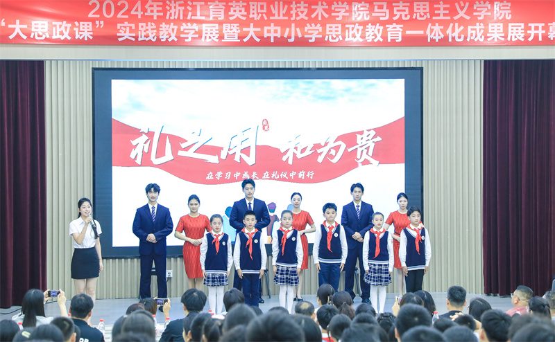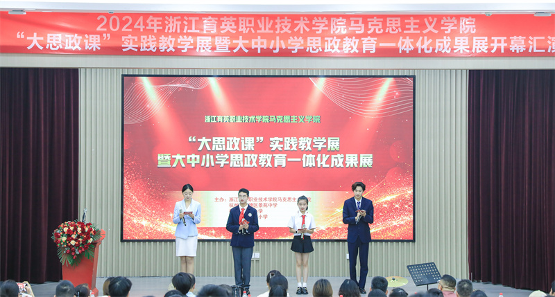 6月11日,浙江育英职业技术学院马克思主义学院联合杭州市钱塘区景苑中学、景苑小学、月雅河小学,共同举办“大思政课”实践教学展暨大中小学思政教育一体化成果展。