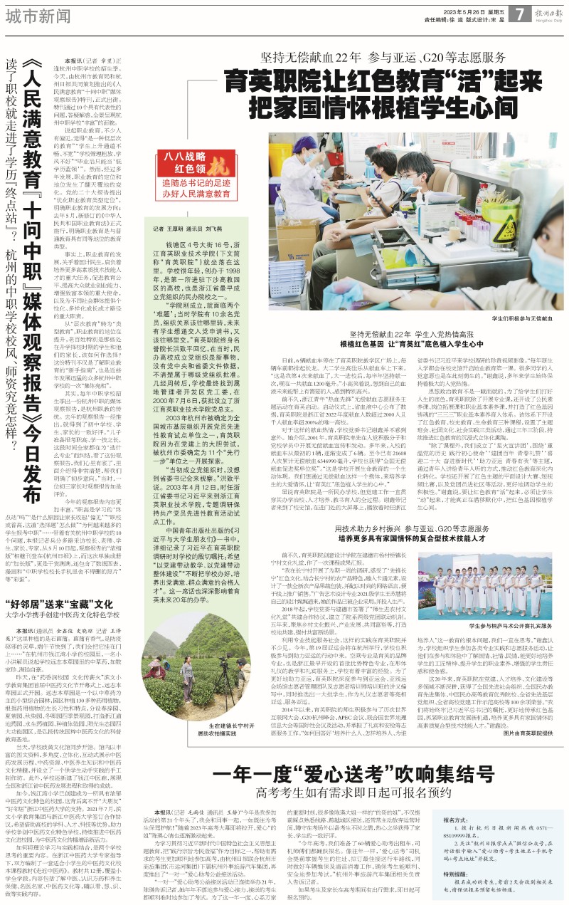 【杭州日报】育英职院让红色教育“活”起来 把家国情怀根植学生心间