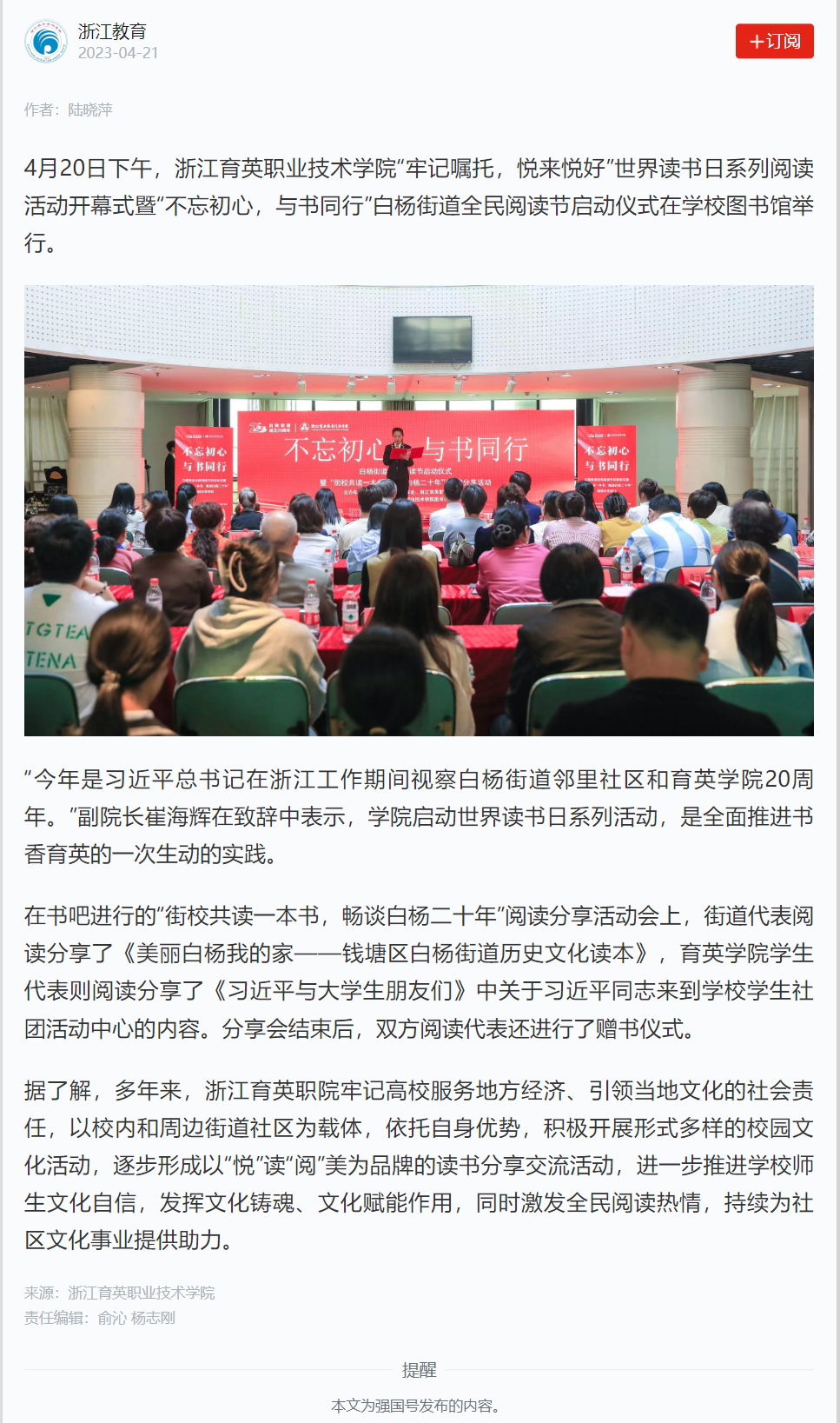 【学习强国】浙江育英职院举办世界读书日系列阅读活动