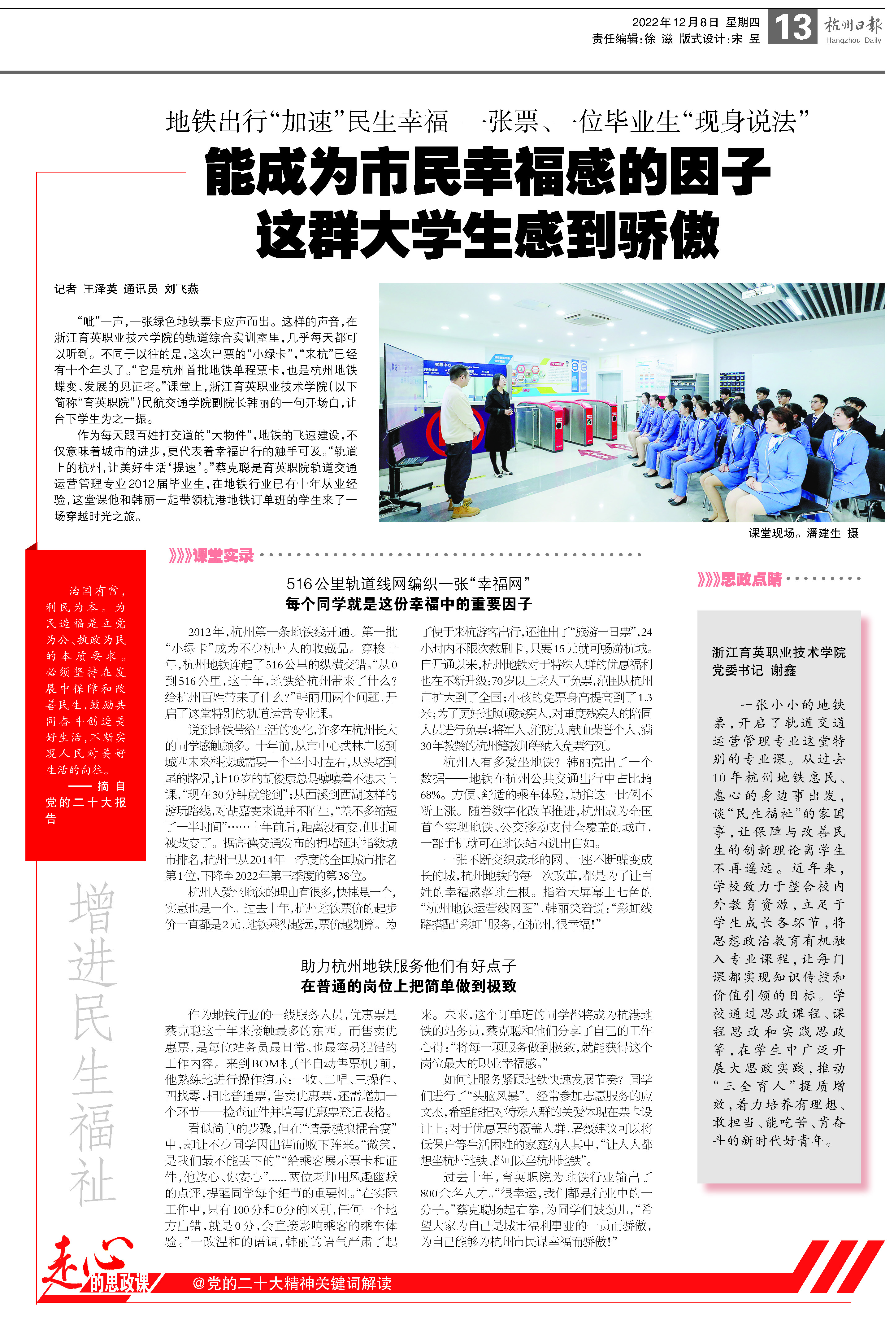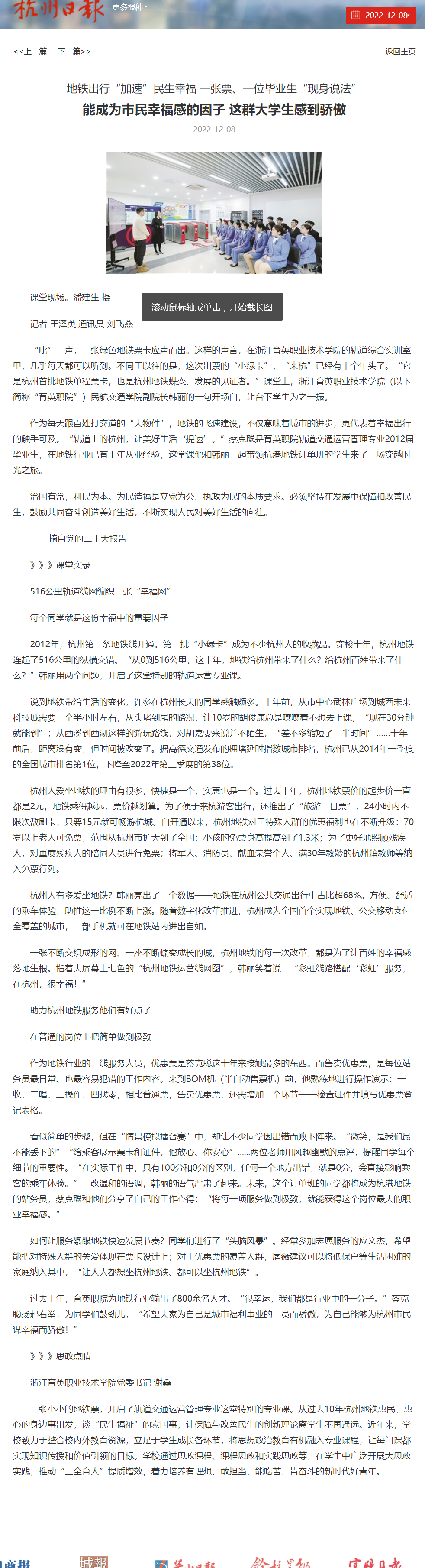 【杭州日报 杭+新闻】地铁出行“加速”民生幸福!能成为市民幸福感的因子,这些大学生感到骄傲