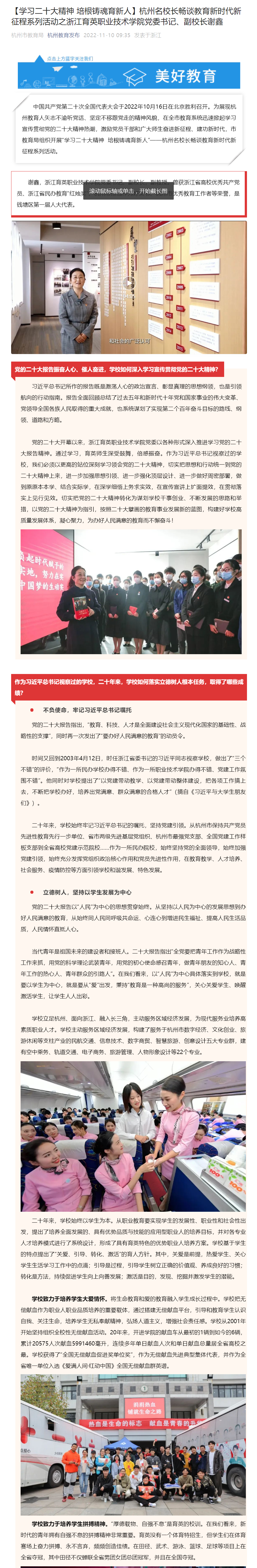 【杭州教育发布】杭州名校长畅谈教育新时代新征程系列活动之浙江育英职业技术学院党委书记、副校长谢鑫