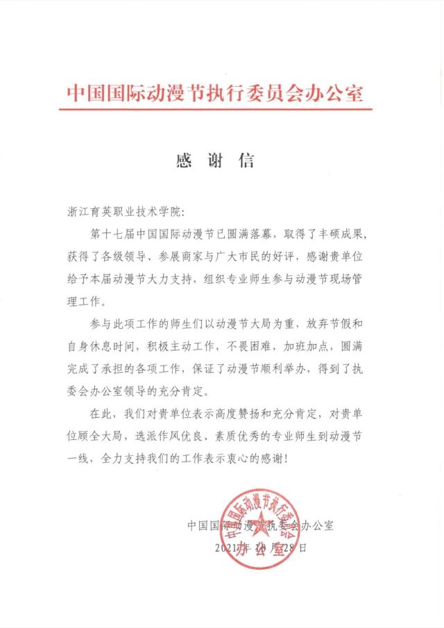 “参与此项工作的师生们以动漫节大局为重,放弃节假和自身休息时间,积极主动工作,不畏困难,加班加点,圆满完成了承担的各项工作……”这封来自中国国际动漫节执行委员会办公室的感谢信,让一所高校的81名学生备受鼓舞。