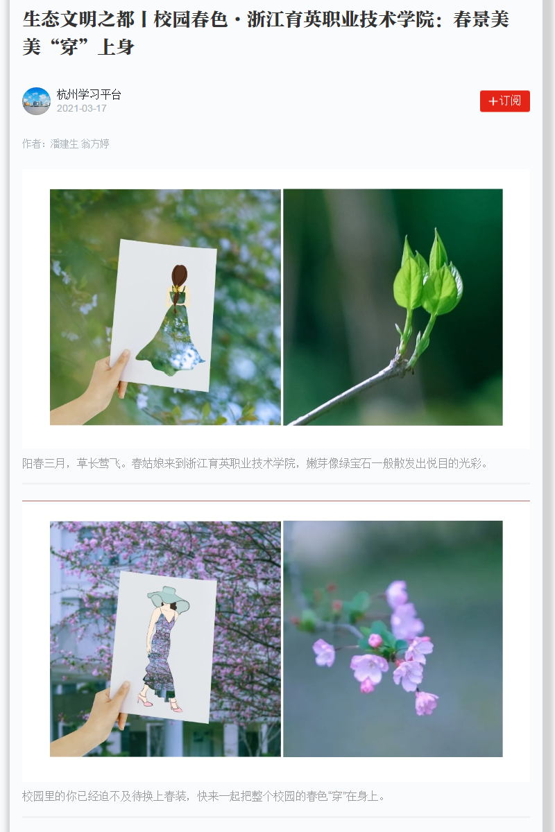 【学习强国】生态文明之都丨校园春色·浙江育英职业技术学院:春景美美“穿”上身