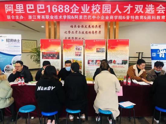 商务贸易分院院长欧阳驹介绍,学院与阿里巴巴1688开展协同育人以来在教学资源建设、师资研修、基地孵化,人才双选方面开展紧密互动,专场招聘会是双方深度合作的一项重要内容。中高职衔接的(3+2)学生是在中职学习3年,高职学习2年,顶岗实习只有一个学期。为了帮助学生尽快找到专业对口的实习岗位,学院积极推进校企合作,借助阿里巴巴1688平台,邀平台头部优质企业,携带适配岗位进校招聘。专场招聘会之前,分院对学生做了职业规划、工作区域、岗位意向、就业时间等方面的调查和数据分析,实行企业和的岗位精准推介,让学生应聘针对性更强,沟通更高效。