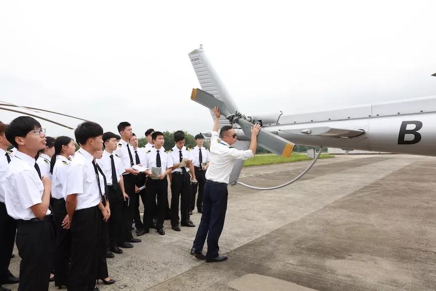 2017年9月,浙江育英职业技术学院直升机驾驶技术专业学生在校外实训基地进行课程实训。/潘建生 摄