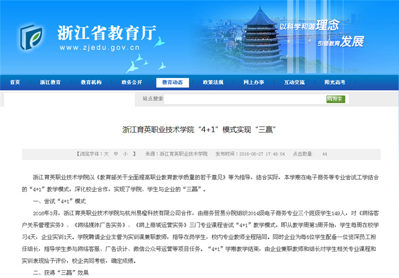 浙江育英职业技术学院“4+1”模式实现“三赢”