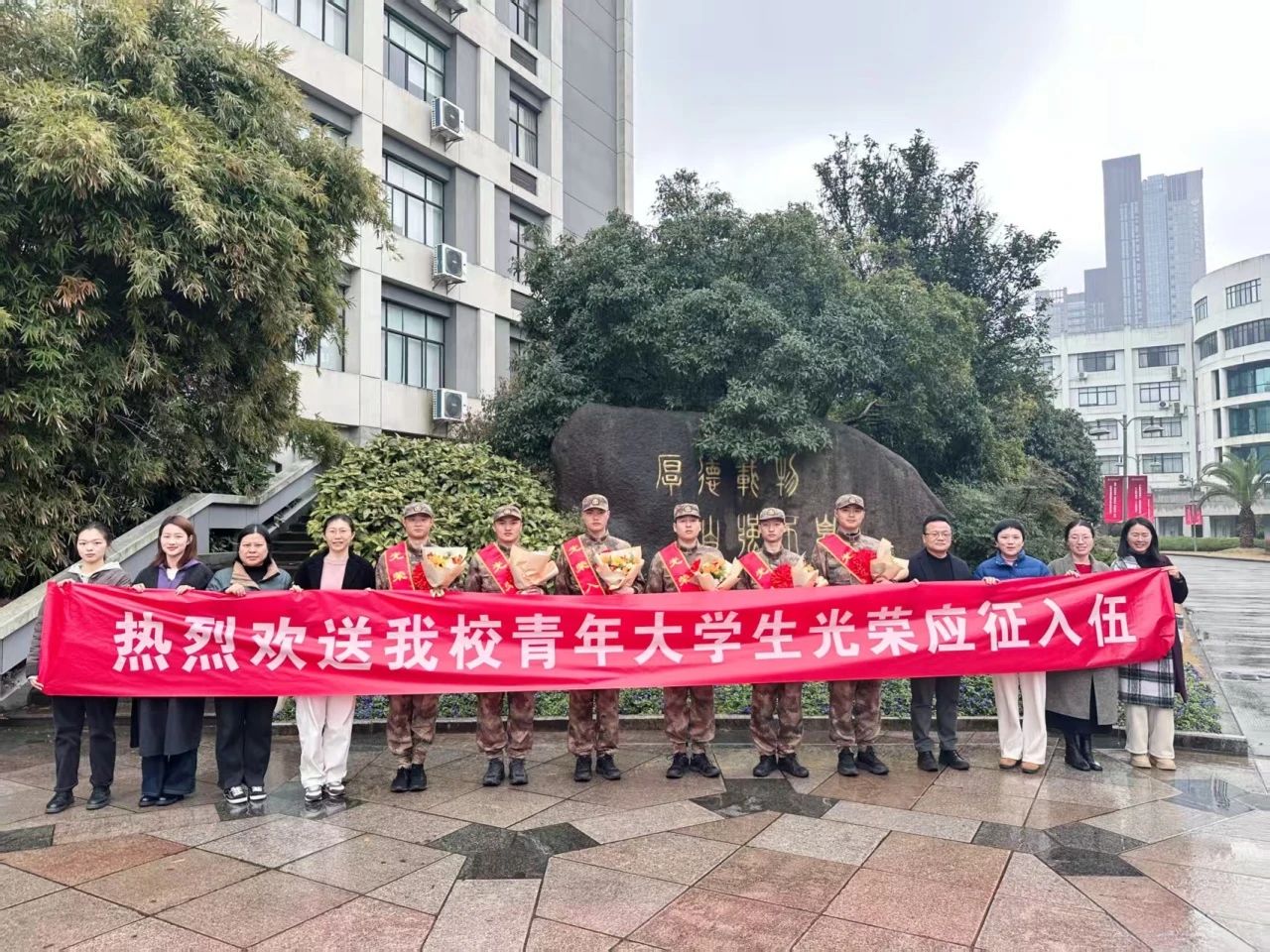 3月15日,学校举行了2025年春季钱塘区应征入伍新兵欢送会,热烈欢送应征入伍的同学并送上最诚挚的祝福,6名新兵身着迷彩,气宇轩昂,以全新的面貌和精神迎接全新的征程。学校党委副书记、副校长王敏,党委委员、学务部部长、人武部部长邬佳,相关学院党总支副书记、辅导员以及征兵工作相关老师参加了欢送会。