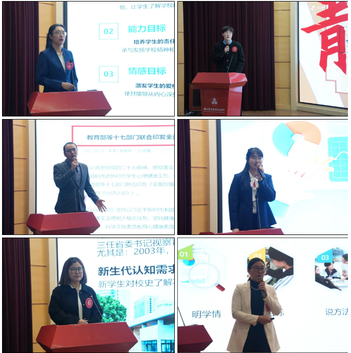 王敏发表讲话。他对辅导员说活动课程提出希望和要求,一是要认真研读文件,严格按照文件规定的要求准备说课内容;二是认真对待说课,用心准备,充分展现辅导员开展学生思想政治教育的职业能力和工作水平;三是要通过说课进一步提升归纳总结的能力,运用数据分析摆事实、立论点,提升理论素养。最后,他寄希望辅导员通过辅导员说活动课程的载体,抓住展示自我和交流学习的机会和平台,激发深入研讨和思考的热情,共同增强育人工作的信心和决心。