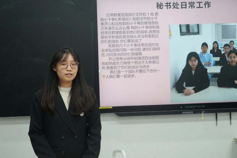2024年12月30日晚上20:20,共青团浙江育英职业技术学院委员会社团管理中心2024-2025学年第一学期述职报告在1304教室举行。本次大会由社团管理中心副主任郑锦坚主持,社团管理中心11名学生干部进行述职,汇报2024-2025学年第一学期社团管理中心的工作情况,校团委副书记社团管理中心指导老师周舟出席并进行学期总结,