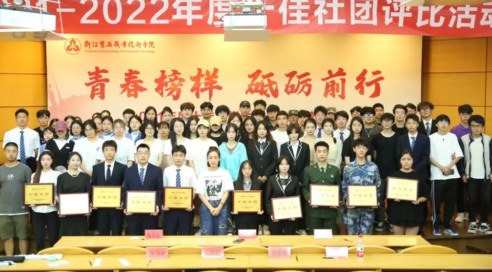 本次十佳社团的评选从现场表现、社团内部建设、社团品牌活动、社团发展情况、现场风采展示等方面对社团进行评分。最终荣伍社、青竹志愿者协会、吉他社、大学生艺术团合唱团、舞蹈队、城市轨道交通协会、树莓派、外贸人协会、院报记者团、青春健康同伴社十个社团被评为十佳社团。
