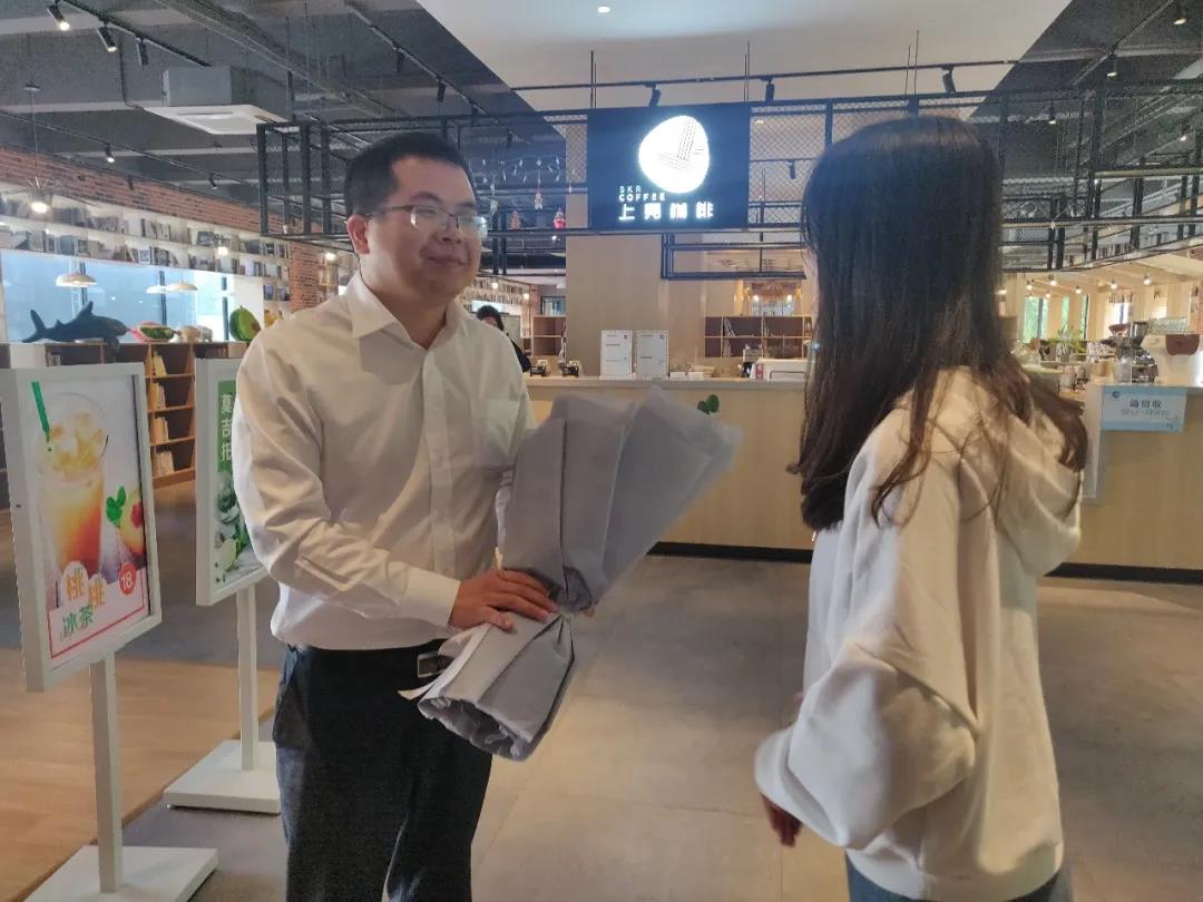 活动开始前,杏缘花社的同学亲手制作了一捧鲜花送给温作奖校友。