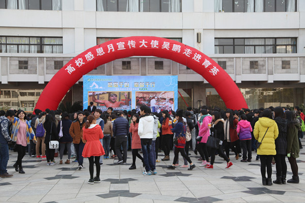 高校感恩月宣传大使吴鹏走进育英与学生互动