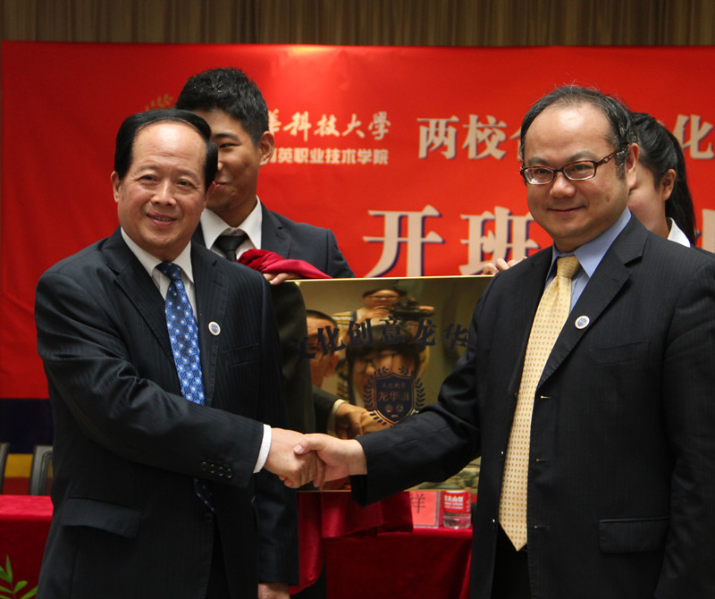 10月9日,台湾龙华科技大学、浙江育英职业技术学院两校合作文化创意“龙华班”举行开班典礼。学院党委书记、院长洪致平,副院长王锡耀,教务处副处长罗振华、艺术系主任宋连凯等出席。台湾龙华科技大学校长葛自祥及国际事务暨公共关系中心副主任尹协麒应邀出席。