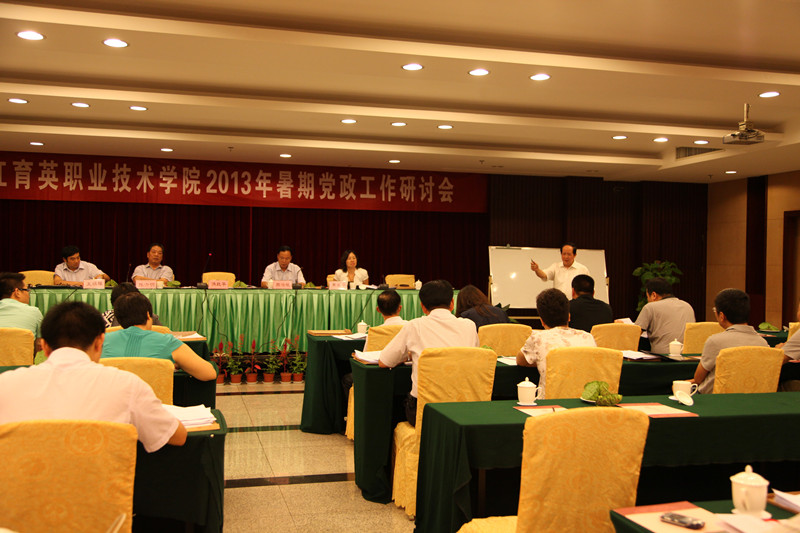 会议主要听取了洪致平《关于目前的形势与我们的任务》的报告以及三位副院长的报告。洪致平从国内、省内和校内的八大“要事”提炼出学院发展所面临的内外环境和各种影响因素。启发与会者的思维,提出学院在新形势下实现优势发展的新思维新思路和专业建设、学生工作和行政工作的突破方向。报告既肯定了学院办学水平处于全省民办高校前列,同时指出学院面临的严峻形势。不仅提出问题,还提出了解决问题的方法,指出要“跳出两难、寻找出路;跳出校园、拓展思路;跳出榜样,创新思路”。在关键方面另辟蹊径,超越“榜样”,走既符合教育规律和高职教育要求,更符合育英实际的创新突破之路,优势发展之路。“以专业建设行业化为方向,以专业建设项目化为举措,把握学生状态,通过“关爱、引导、转化、激活”的方针,提高学生满意度,不断扩大学院影响力;通过加强和改进行政工作,提高各部门执行力,确保学院各项党政工作落到实处。
