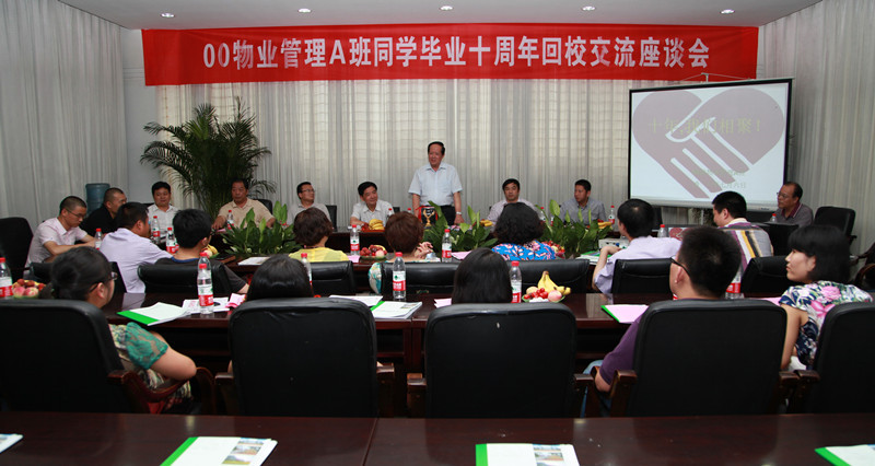 2013年7月6日,原本因放假而略显安静的校园忽然间又热闹起来,随着一辆辆车子的驶入,一个个曾经熟悉的身影出现在了会议室门口。是的,他们是育英毕业十年的学子,他们是育英的骄傲,他们就是00级物业管理A班的同学们。