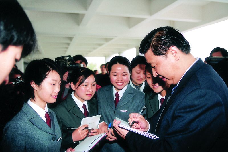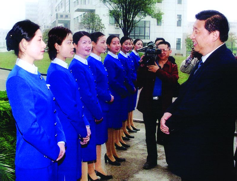 2003年4月12日,时任浙江省委书记习近平视察浙江育英职业技术学院