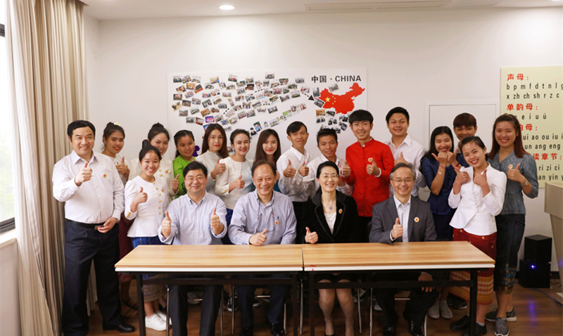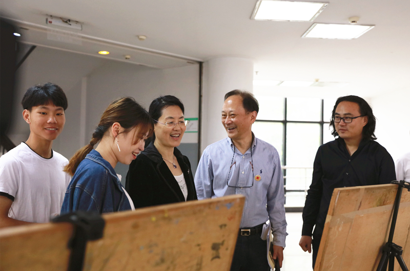 调研期间,陈红英一行还参观考察了我院跨境电商实训基地、创意设计分院创新创业实训基地,看望了省内高职首个成建制学历留学生班15名老挝留学生,勉励留学生们在育英学院学有所成,并与同学们亲切合影。
