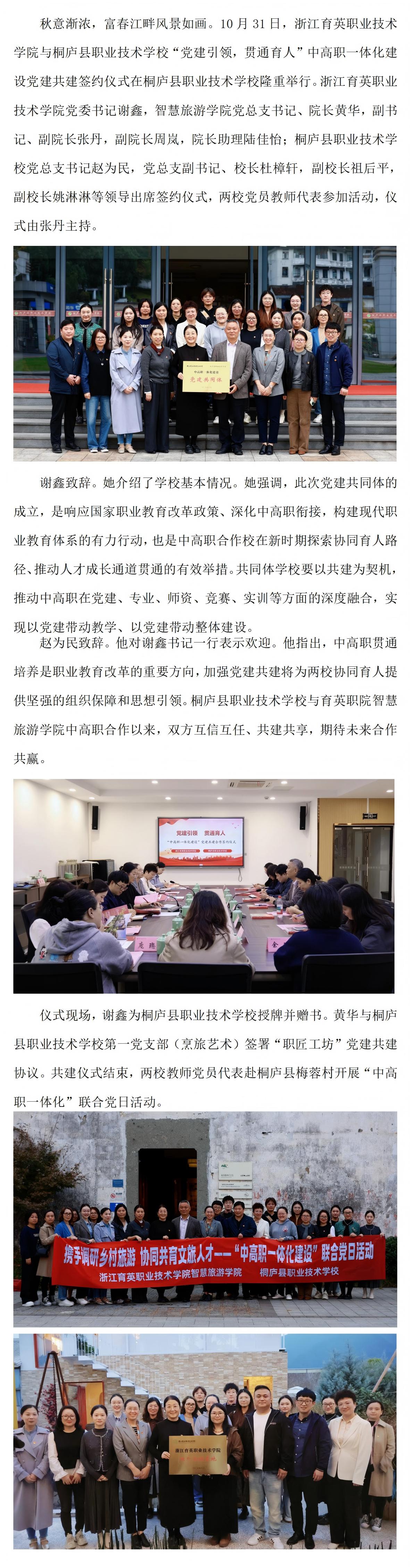 中高职一体化党建共建 | 党建引领聚合力 贯通育人谱新篇——学院与桐庐县职业技术学校开展联合党日活动