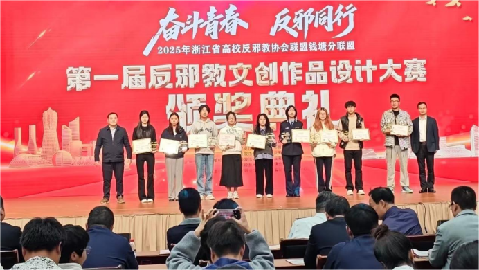 本次大赛由杭州市钱塘区委政法委、区反邪教协会等单位联合主办,并获省委政法委、省教育厅等多部门指导支持。我校师生凭借富有创意的作品,有效传递了反邪教的正向声音,充分彰显了我校在反邪教文化创作与宣传教育方面的扎实成效,是对相关工作成果的有力印证。