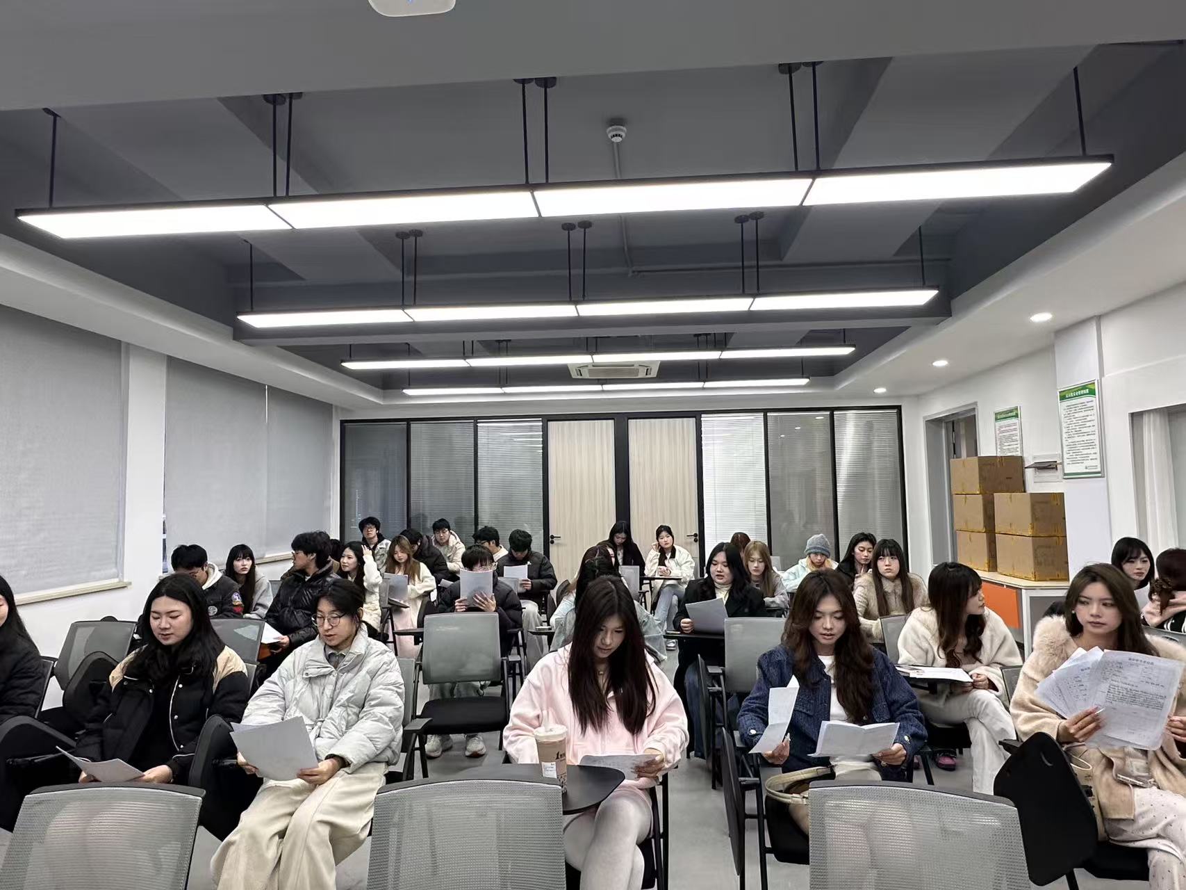自2025年12月数智商贸学院与杭州直播电商协会成立直播电商产业学院以来,直播电商协会为学院推荐了大量的直播合作企业,一些优秀的直播行业一线企业与学院进行了合作洽谈。就在3月17日这天,灰豚数据与思美传媒两家知名企业来学校进行项目面试。学院动员了包括:直播电商、电子商务、国际商务、营销等专业的40余名学生,参与了这次直播项目面试活动。