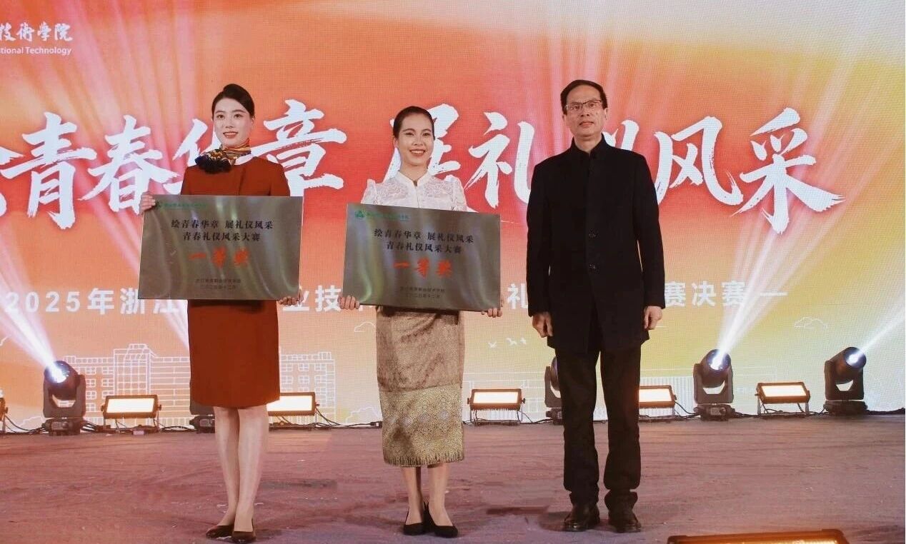 12月16日,浙江育英职业技术学院2025年“绘青春华章,展礼仪风采”青春礼仪风采大赛决赛在学校体育馆举行。校长丁金昌,党委副书记、副校长王敏出席,相关部门负责人,各学院党总支副书记、团总支书记及学生代表到场观赛。