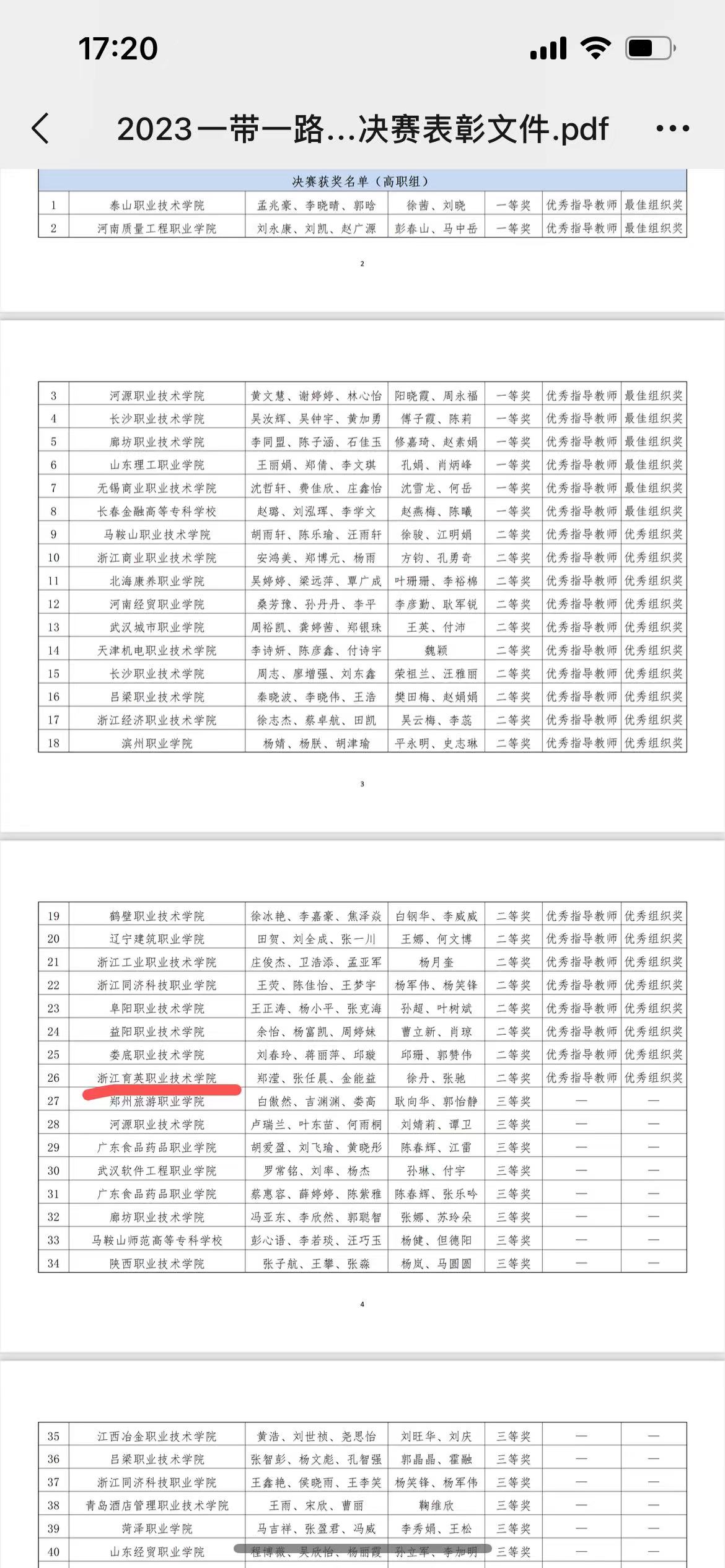 2023年11月25日-11月26日,2023一带一路暨金砖国家技能发展与技术创新大赛之零代码数智应用搭建技能竞赛全国总决赛在河南经贸职业学院举办,信息技术分院创意班1支队伍获全国二等奖。