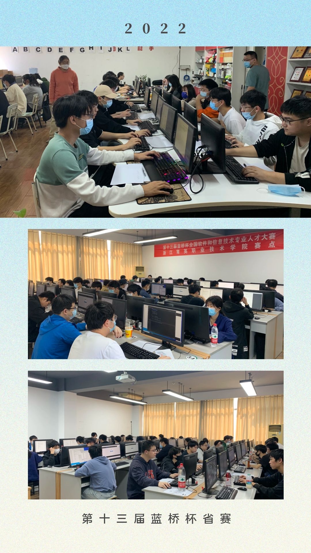 浙江育英职业技术学院信息分院共计73名同学参加此次省赛,受疫情影响,此次比赛采用一校一赛点的方式进行线下比赛+线上赛组成。学院及分院对此次竞赛给予了充分的帮助,在9日上午8时30分,参赛同学有序入场,9点钟比赛正式开始。下午1时,比赛顺利结束。在疫情防控的特殊时期,同学们克服困难、努力进取、奋力比拼,展现出育英学子的积极拼搏、奋发向上的育英精神。