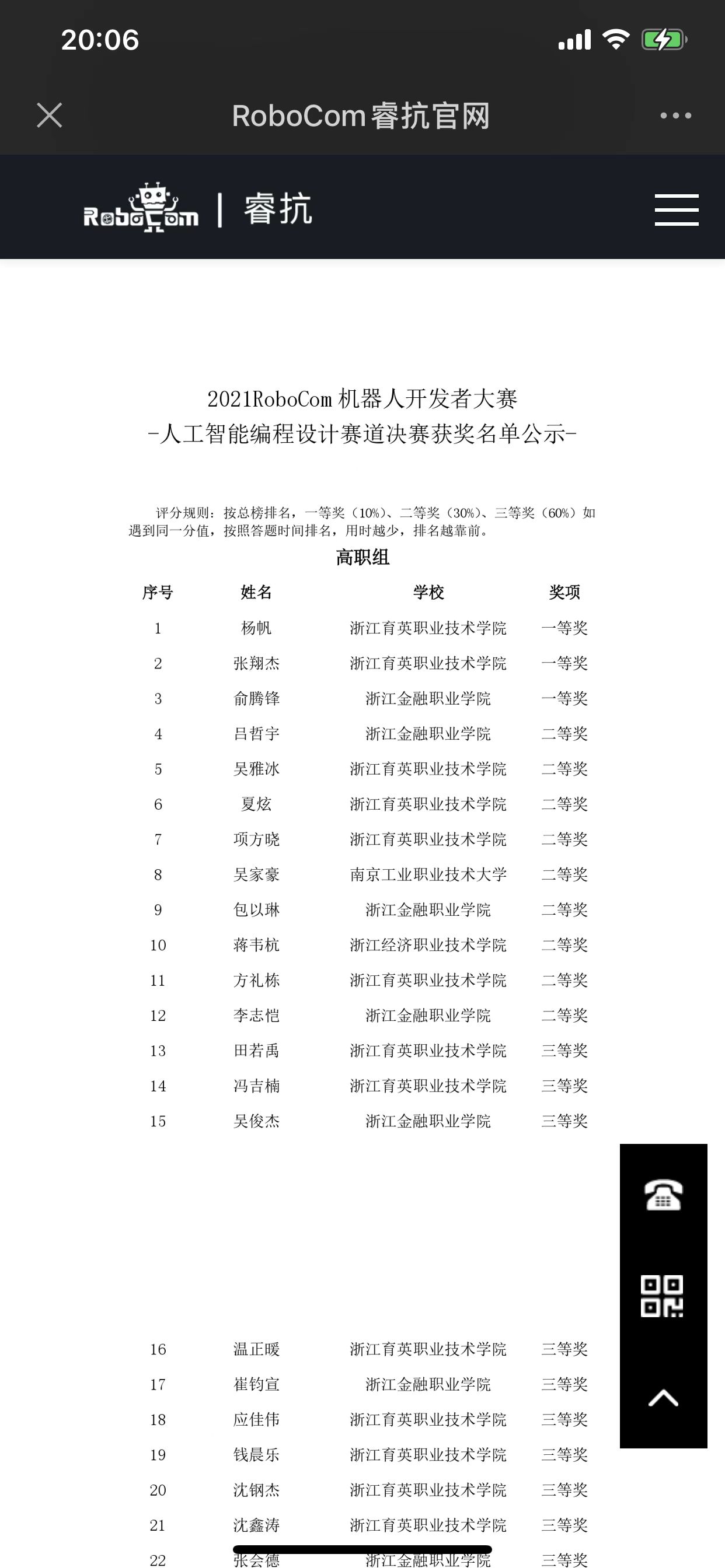 2021RoboCom机器人开发者大赛包含了中国历代绘画大系数字创意赛道(CAIA2021)、人工智能编程设计赛道、机器人综合竞技赛道、新一代人形机器人应用赛道、智能照护赛道5个赛道;近3000名参赛选手分别来自28个省市、200所高校,层层选拔、激烈角逐进入决赛,本届赛事因疫情原因首次以高校承办的方式进行了初赛、复赛、决赛三轮。目前,信息分院学生已经积极投入备赛,争取在今年的赛事上再创新高。(徐丹)