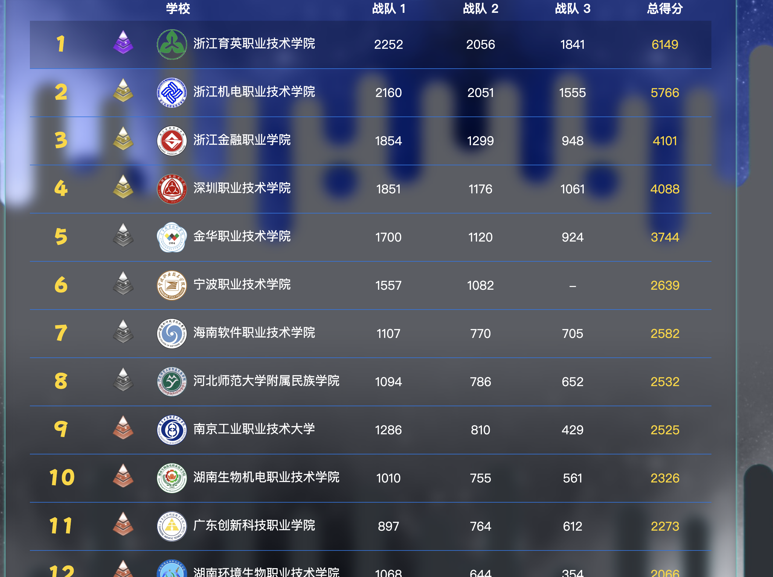 本次天梯赛吸引了347所本专科高校1100支队伍10946名选手参加,其中珠峰争鼎组第一名为浙江大学,华山论剑组第一名为中国石油大学(华东),沧海竞舟组(高职高专组)第一名为浙江育英职业技术学院,第二、第三、第四名分别为浙江机电职业技术学院、浙江金融职业学院、深圳职业技术学院。浙江育英职业技术学院以总分6149的绝对优势取得全国高校特等奖!