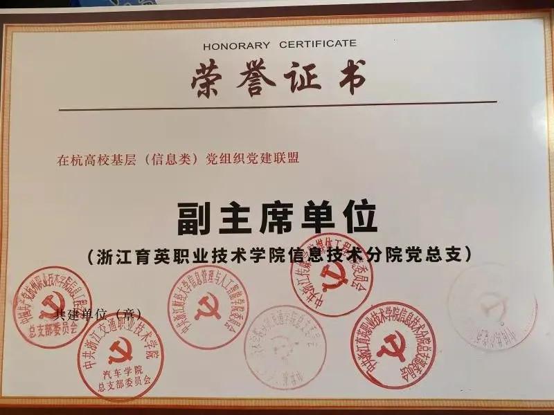 1月11日,由杭州职业技术学院信息工程学院党总支、浙江财经大学信管与人工智能学院党委、浙江传媒学院媒体工程学院党委、浙江金融职业学院信息技术学院党总支、浙江交通职业技术学院汽车学院党总支、浙江经济职业技术学院商贸流通学院党总支、浙江育英职业技术学院信息技术分院党总支等共同发起的“在杭高校基层(信息类)党组织党建联盟”正式签约成立。联盟第一批盟员单位都是全国党建样板建设支部或在杭高校基层信息类分院的党委(或总支)。联盟推选产生了第一届主席、副主席与秘书处单位。浙江育英职业技术学院信息技术分院党总支当选联盟第一届副主席单位。