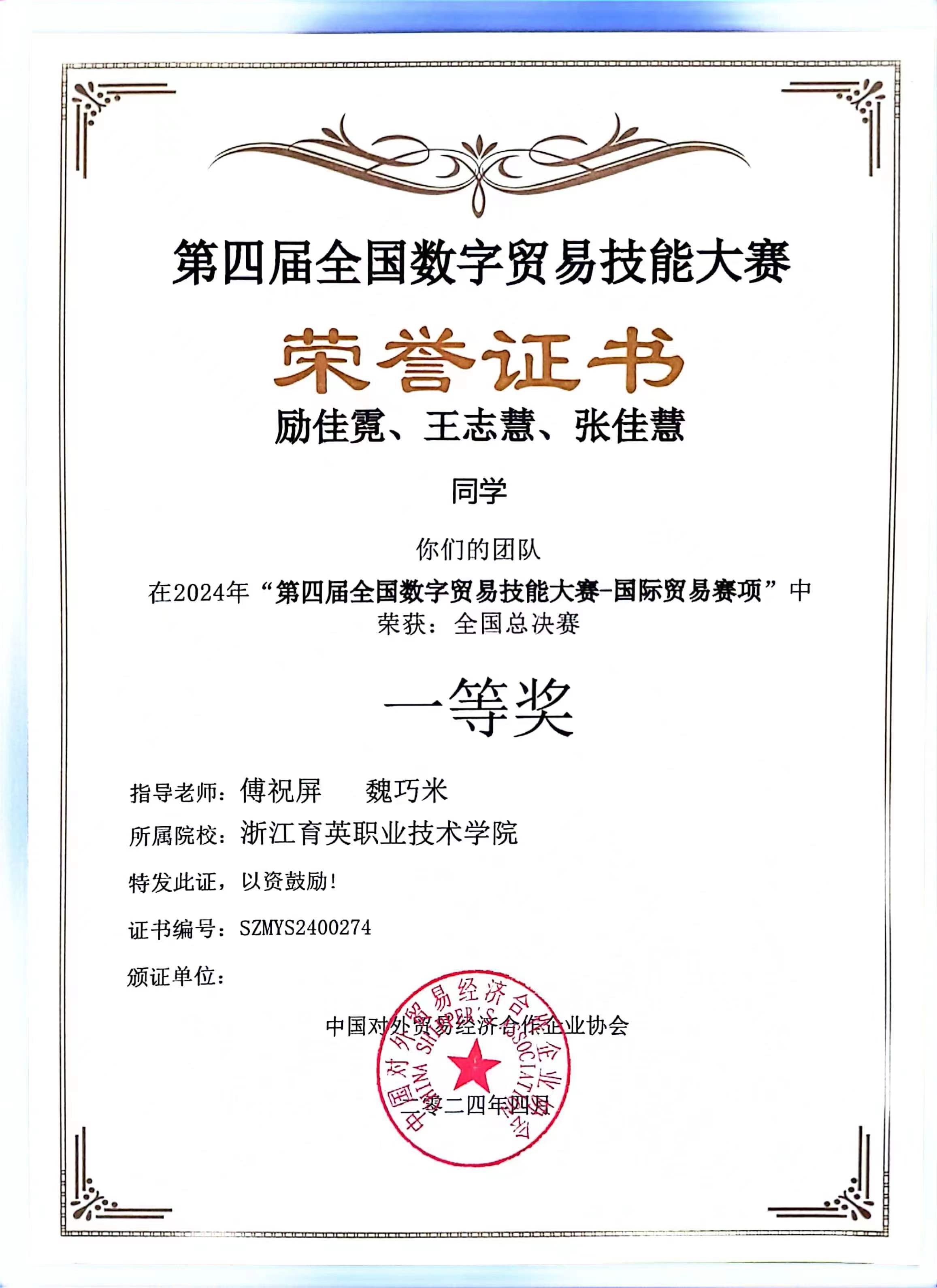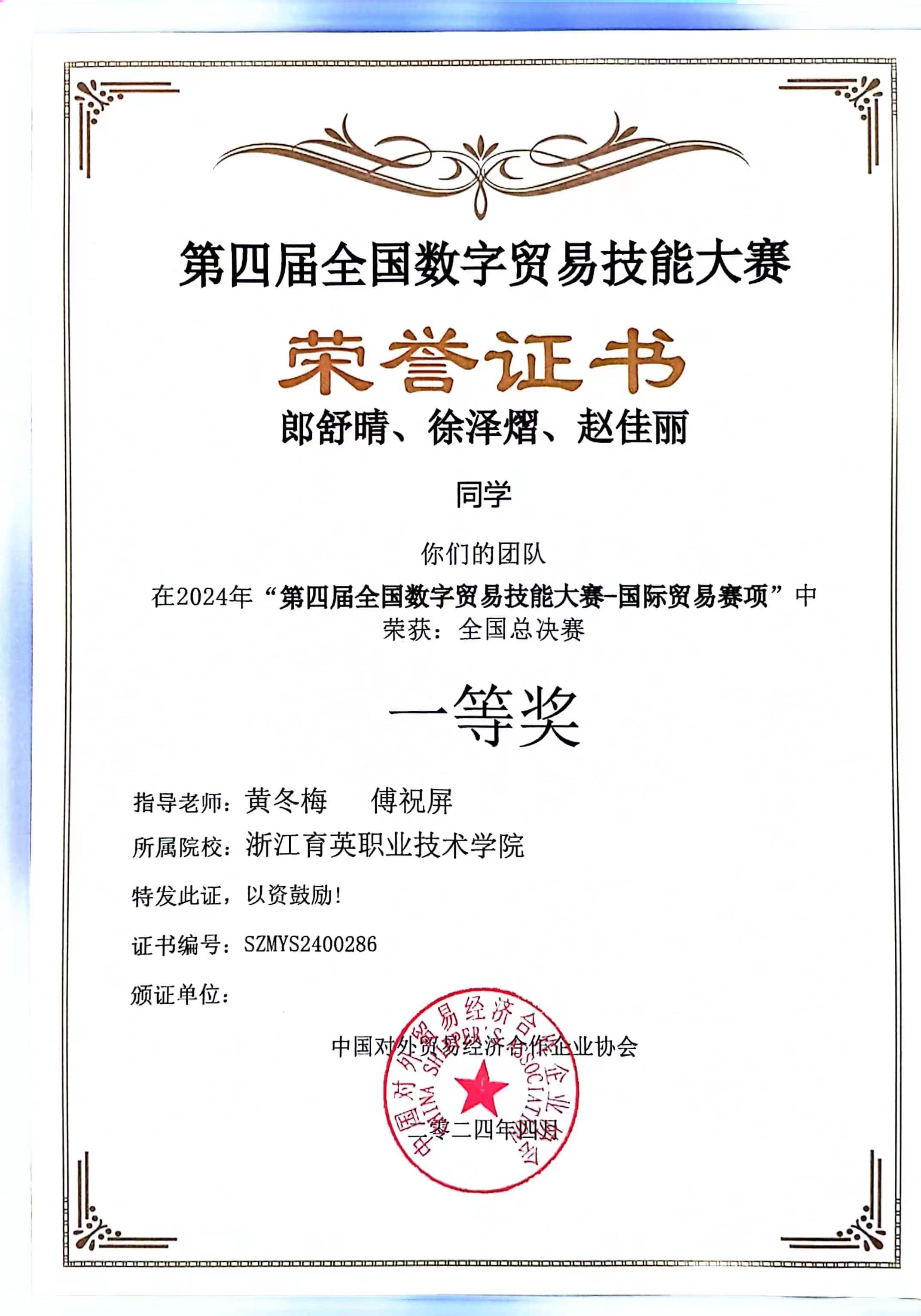 由中国对外贸易经济合作企业协会举办的“第四届数字贸易技能竞赛(国际贸易赛项)”近日成功举行。我校数字商贸学院国商专业派出八支代表队共计24人参加了比赛,指导老师分别为国商专业黄冬梅老师、傅祝屏老师和魏巧米老师。