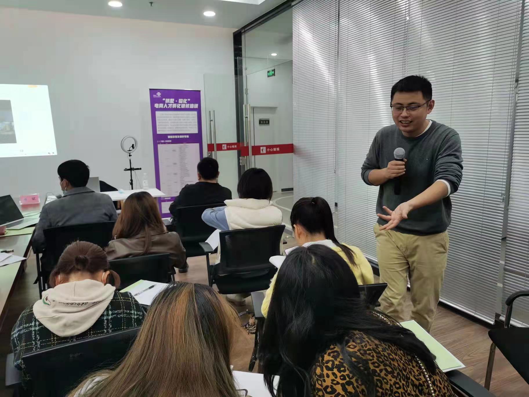 2022年3月10日,数字商贸分院电商教研室孙斌老师受邀参加了在延安路联通大厦的举办的“拱墅·昭化”电商人才孵化研修培训。他为来自四川省广元市昭化县20位电商创业青年带去了为期一天的内容电商课程。
