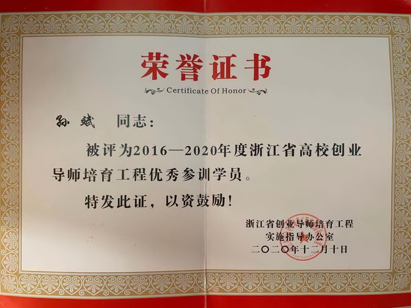 为进一步深化创新创业教育改革,总结经验,表彰先进,调动各高校教师从事创新创业教育的积极性,充分发挥先进典型示范引领作用,经浙江省教育厅同意,决定开展 2016~2020 年度浙江省高校创业导师培育工程评优推荐工作。商贸分院电商教研室孙斌老师在这次评优推荐中被评为2016——2020年度浙江省高校创业导师培育工程优秀参训学员。