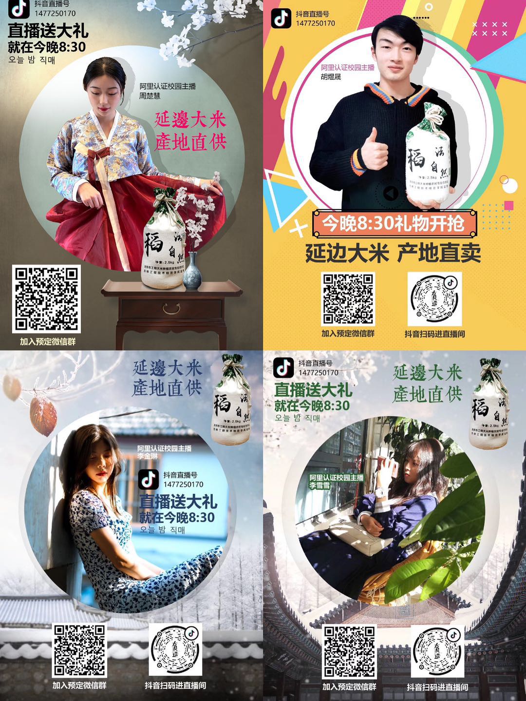 项目接洽后,在分院欧阳驹院长的组织下,由“大良造电商工作室”牵头,研究制定了廉明村大米的营销推广方案,以校园主播“直播带货”的方式进行产品推荐。随后,大良造工作室组织开展了校园主播的选拔与培养工作,从获得“阿里巴巴中小企业商学院”认证的学生中选拔出5位优秀校园主播,并对他们进行了专题的培训。同时,精心设计制作了预告海报,提前在多个网络平台上发布,对此次“直播实训”活动进行预热。