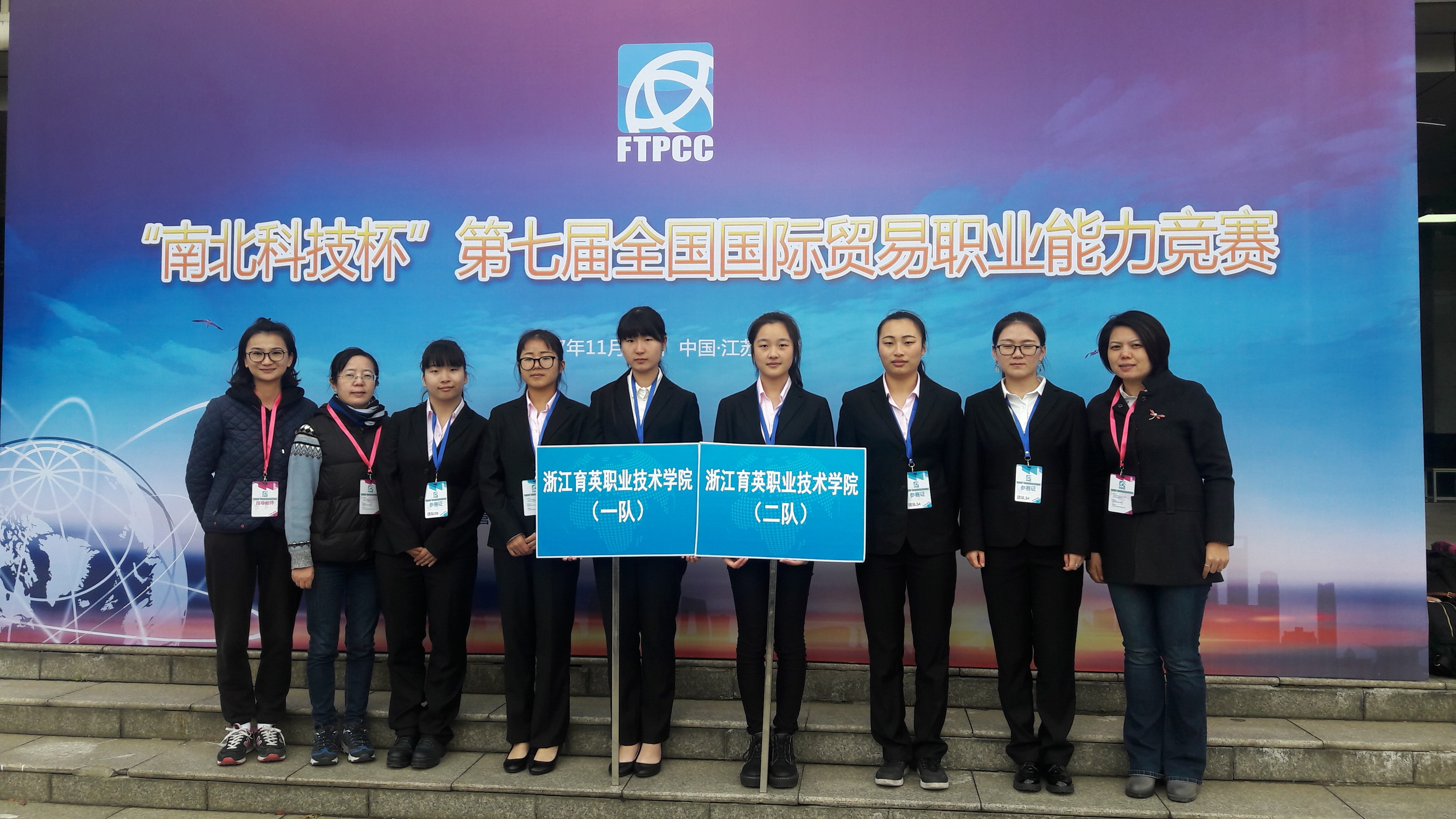 11月18日,“南北科技杯”第七届全国国际贸易职业能力竞赛在常州机电职业技术学院举行。本次大赛由中国对外贸易经济合作企业协会、中国商业企业管理协会共同主办,由常州机电职业技术学院承办,来自全国各地近五十所本专科院校、七十多支队伍参加了本次大赛。我院国际经济与贸易专业也派出了两个参赛队,分别为一队:曾杰芳、彭程、陈夏妮,二队:凌非庸、马静如、方妤馨,领队是傅祝屏老师,指导老师是魏巧米、黄冬梅老师。