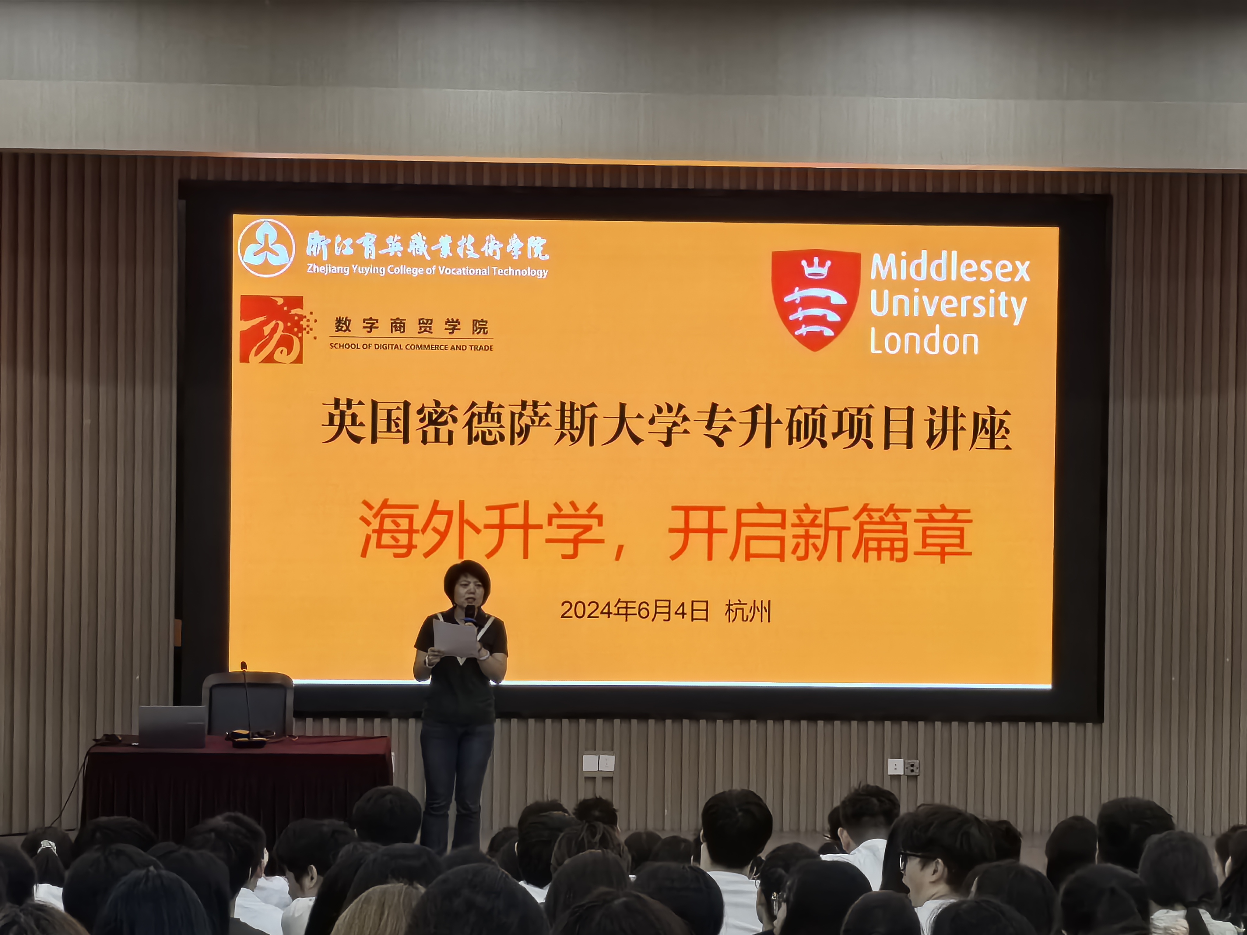 2024年6月4日12:30-13:30,在育英学院3号楼一楼报告厅,数字商贸学院召开了题为“海外升学,开启新篇章”的密德萨斯大学专升硕预科班招生宣讲讲座。