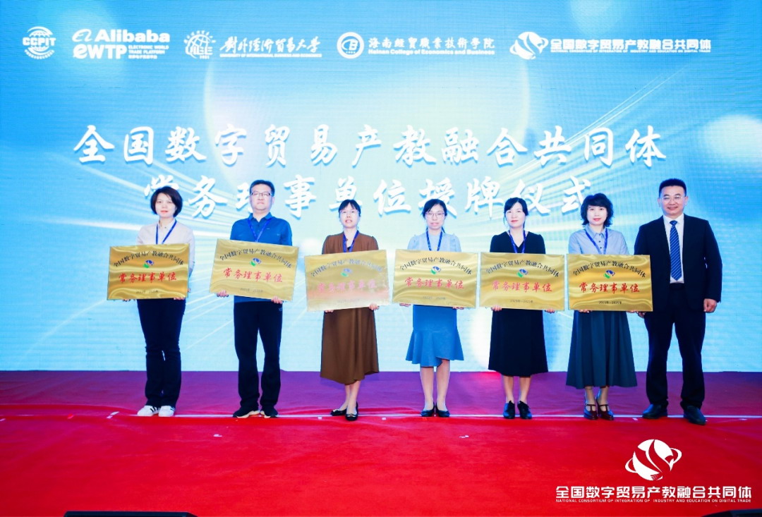 全国数字贸易产教融合共同体由全国外经贸职业教育教学指导委员会指导,中国国际贸易促进委员会商业行业委员会、阿里巴巴国际数字商业集团、对外经济贸易大学、海南经贸职业技术学院联合牵头组建。首批成员单位171家,包括本科院校、职业院校、科研院所、行业组织和企事业单位。