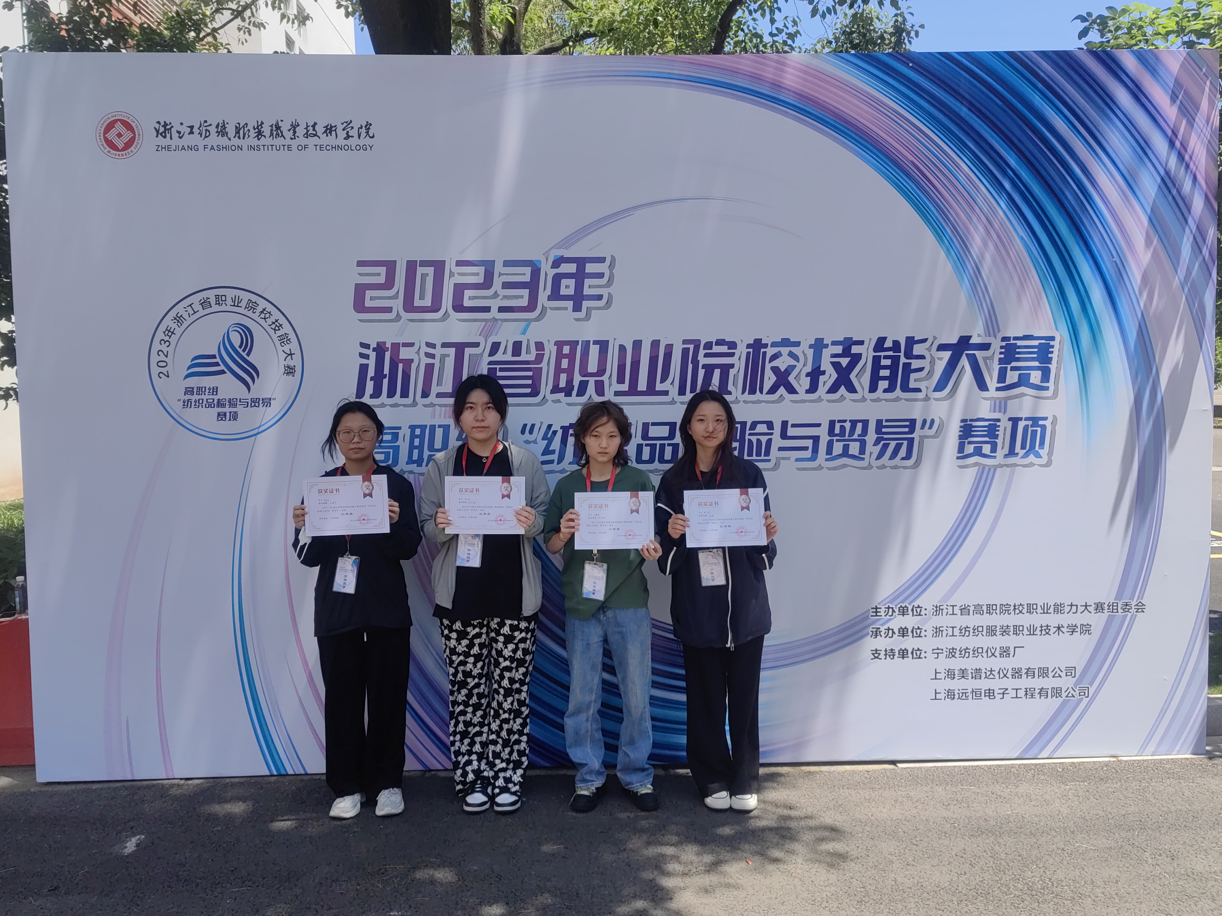 5月26-28日,由浙江省高职院校职业能力大赛组委会主办的2023年浙江省职业院校技能大赛暨全国职业院校技能大赛选拔赛高职组“纺织品检验与贸易”赛项在浙江纺织服装职业技术学院成功举办。本次竞赛采用单人竞赛模式,有来自全省各相关院校的29个选手代表参加了比赛。数字商贸学院选派王朦晨、黄阳笑、吴彤雨、陈瑜四名同学代表参赛,经过激烈角逐,获得二等奖一项,三等奖三项,并以团体第三的成绩成功取得入围国赛资格。这也是我院参加省A类赛事首次挺进国赛,实现历史性的突破!