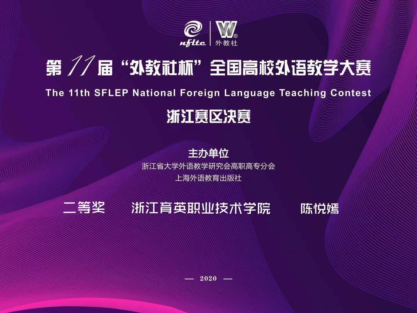 11月14日,第十一届“外教社杯”全国高校外语教学大赛浙江赛区的决赛圆满画上句号。我校商务贸易分院青年教师陈悦嫣经过复赛的激烈竞争,从近30名选手中脱颖而出成功跻身决赛,并最终获得二等奖。