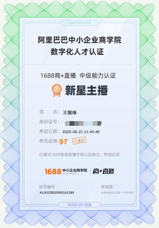 6月22日,1688官方批准首批校园见习主播参加具有阿里巴巴官方中级能力认证的新星主播的晋级考试,校园新星主播是由阿里引领而逐步推进的当下电商风口一个主流群体,不仅形式新颖,业界追捧,同时对主播人员要求严格,淘汰频繁,代表了在电商发展阶段中跨界、线上线下融合、人货场融合的互联网思维下的新玩法,通过努力,30名见习主播均以90分以上的好成绩拿到了校园新星主播认证证书,为他们的主播之路又奠定了一块扎实的基石。