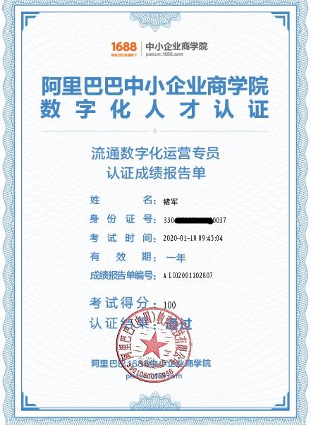 钟浩亮是2018级浙江育英职业技术学院电子商务专业学生,也是阿里巴巴1688与学院合作育人的受益者。在本次阿里官方数字化运营专员认证中,他以满分的成绩通过认证。在实习前就具备了一个数字化运营专员的基本技能,可以持证上岗。