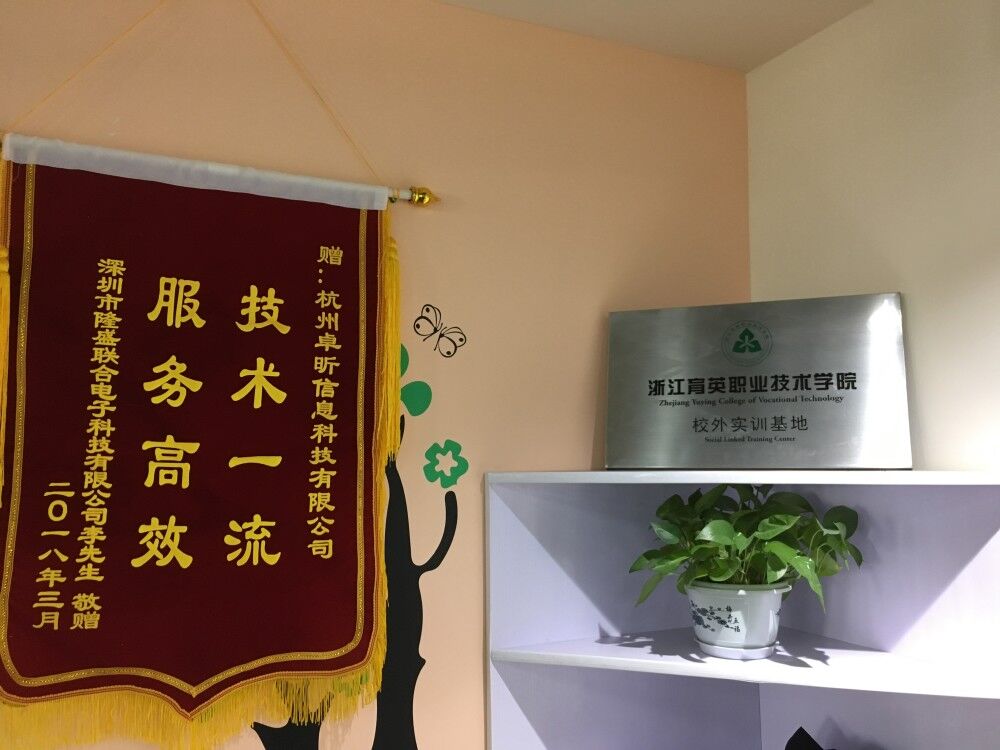 随后,走访了杭州卓昕信息科技有限公司。该公司创始人为我校毕业生,一直以来积极与我校沟通合作,目前在该公司实习的同学有近20名。在与实习同学交流之后,王叶老师代表学院授予公司校外实训基地牌匾,在交流中,双方在订单班合作上进行做了一定的探讨。