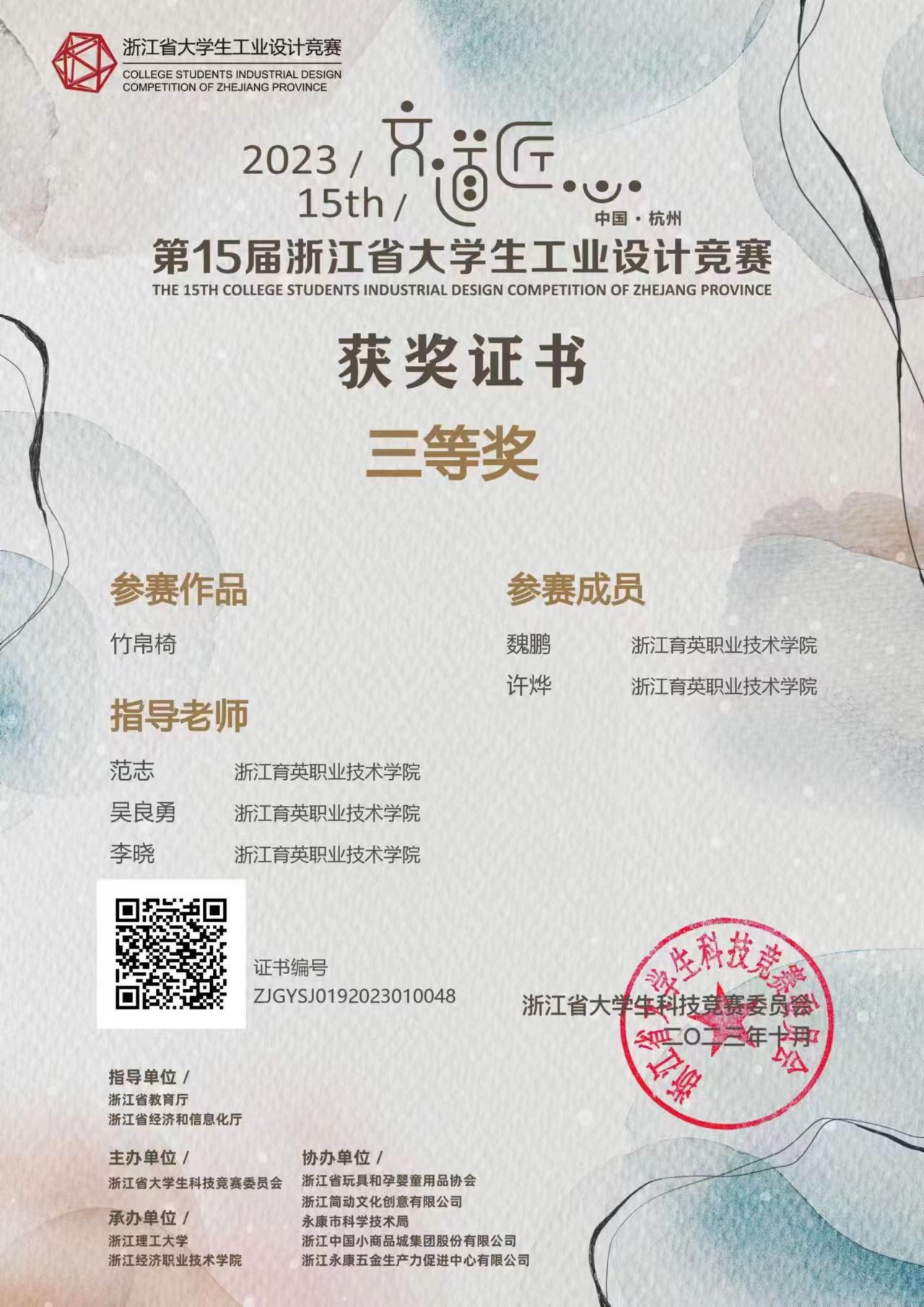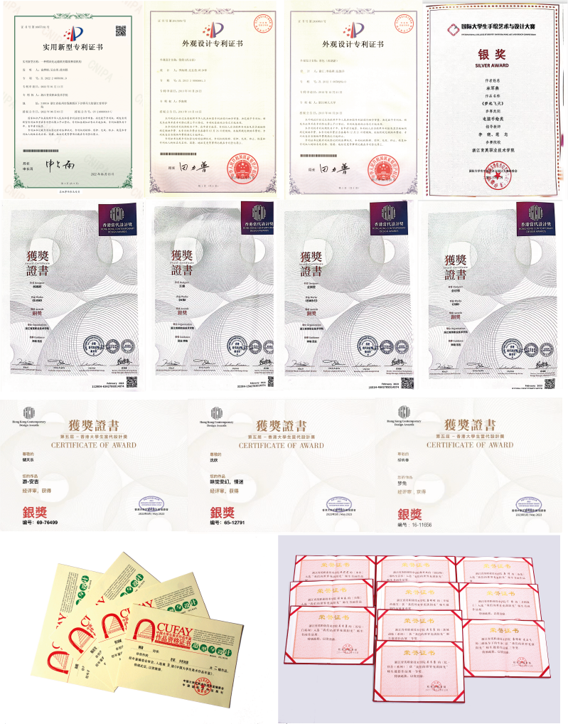 近年来,产品艺术设计专业学生先后在国内各类专业竞赛中获得佳绩,其中在中国大学生文化创意大赛、全国高校数字艺术设计大赛、浙江省工业设计大赛等二十余项大赛中,获得了两百多人次的荣誉和奖项,并获得了多项的专利。