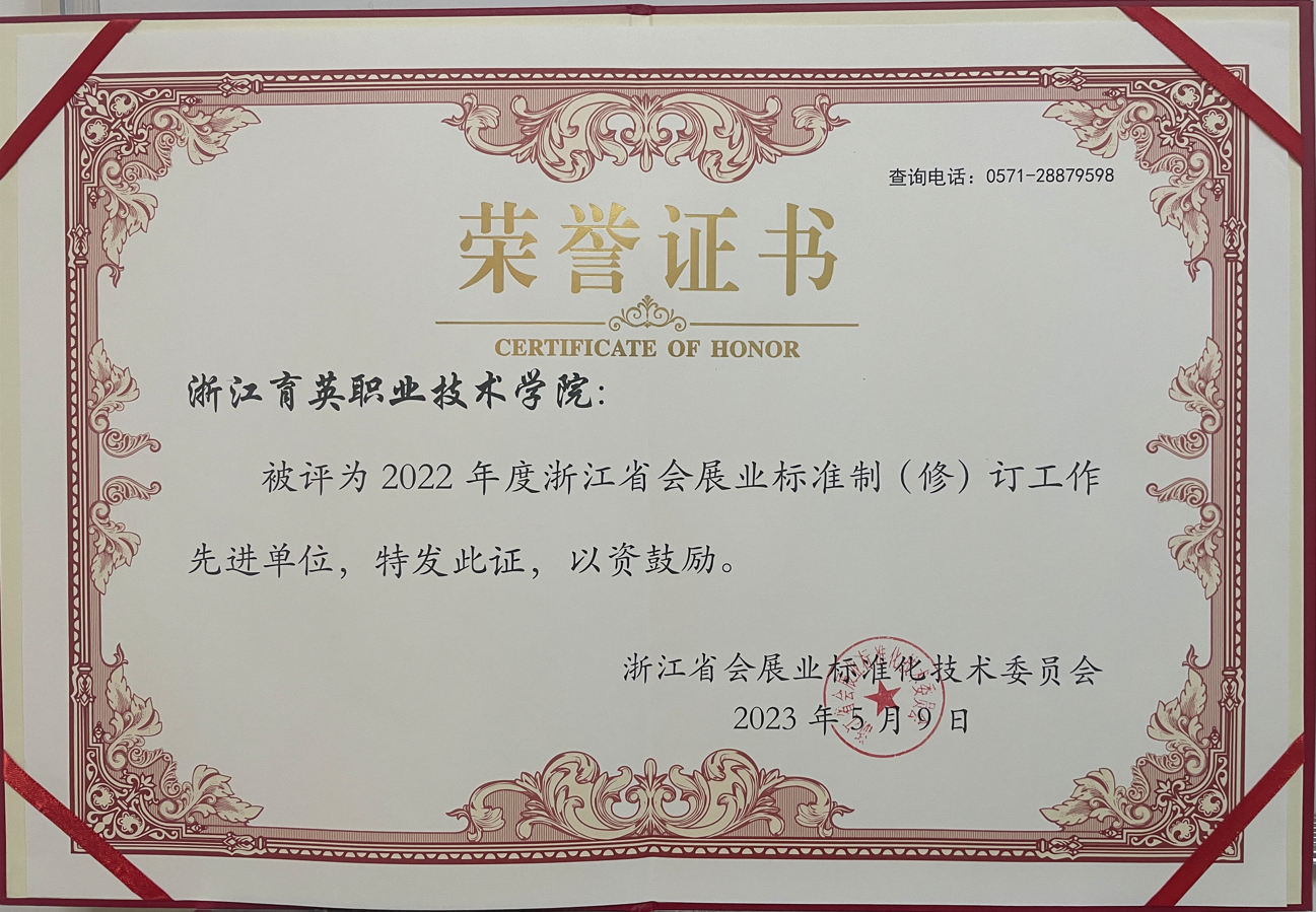 学校被评为浙江省会展业标准制(修)订工作先进单位
