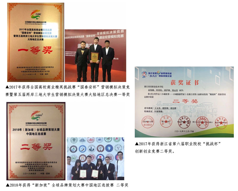 专业营销工作室被杭州市教育局授予市属高校产学对接技能名师工作室,由浙江省工业营销企业联合会吴知明会长领衔,星巴克、联华华商、圣奥三家零售集团副总经理组成名师联盟,带领、指导学生承接社会、企业的营销策划业务。专业还专门成立营销精英训练营,由专业教研室资深教授指导,通过实践项目训练,行业专家讲座交流,全面培养学生的创新创意创业能力,培养拔尖营销职业人。