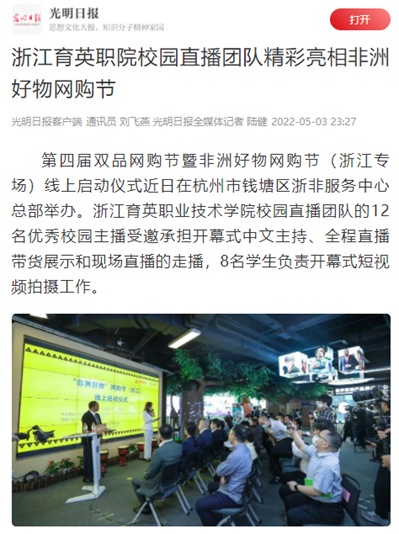 光明日报报道浙江育英职业技术学院直播团队参与非洲好物网购节活动