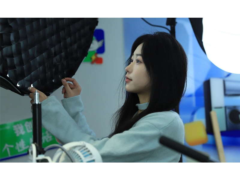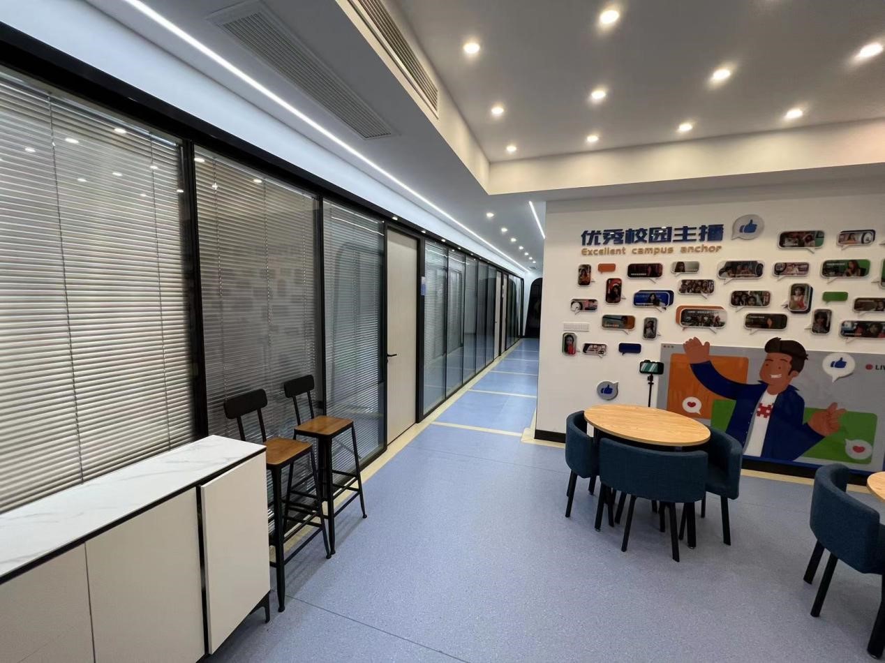 场:实训场地环境全真,配备一个全景巨彩多功能直播实训室,12个100多平米的标准化直播间。为学生的实训课程打下良好基础,更与多家知名企业合作,共建共用直播场地。这里可以手把手教同学们电商直播的各种玩法,也是专业学生大显身手的绝佳场所。