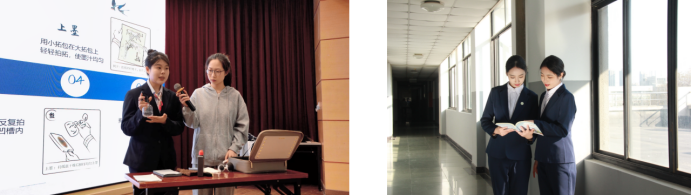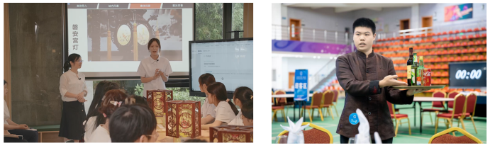 学院紧扣真实岗位与真实项目精心设计人才培养方案,依托文旅产业链构建 "专业分方向、职业分岗位、学生可选择"的课程体系,以数智赋能重构课程内容,核心就是"让课程跟着岗位走、实践贴着产业转"。课程建设注重数字化融合与真实场景植入,全程践行"岗课赛证" 综合育人理念:"岗"上,与 JW 万豪、洲际、杭州国博、乐刻运动等头部企业共定标准,以岗定课;"赛"上,将专业竞赛标准与内容融入日常教学,以赛导课;"证"上,融通定制旅行管家实务、前厅运营管理、会展管理、全媒体运营师等职业资格证书,以证验课。同时,学院深化教学改革,推行"做教学一体、师-AI -生协同"的课堂模式,现已建成省级课程思政课程2门、省级一流核心课程1门、市校级重点课程8门。